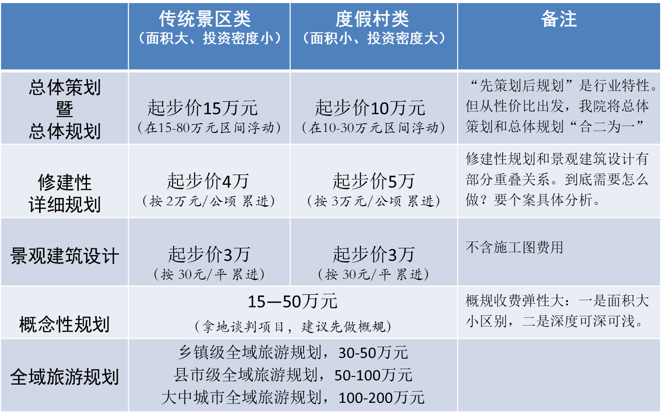 首先必須說明,旅游規(guī)劃收費并無所謂的“標準價格”,但很多客戶還是表示希望“知根知底”,所以至道規(guī)劃院就結合多年經驗及行業(yè)...